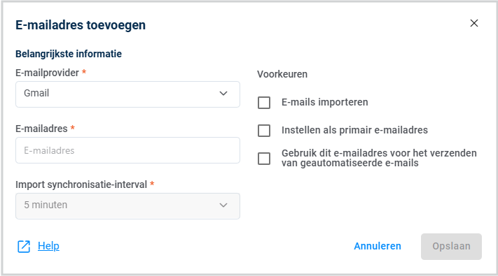 - E-mailprovider, kies uit Gmail of Office365.