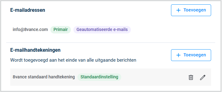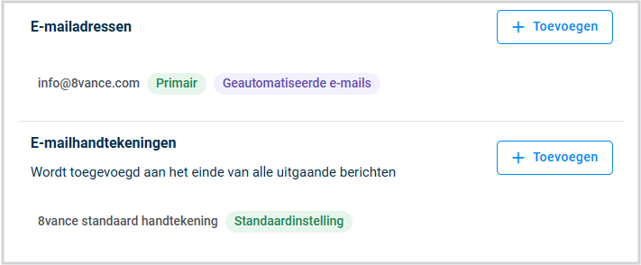 Om een e-mail handtekening toe te voegen klik je op + Toevoegen