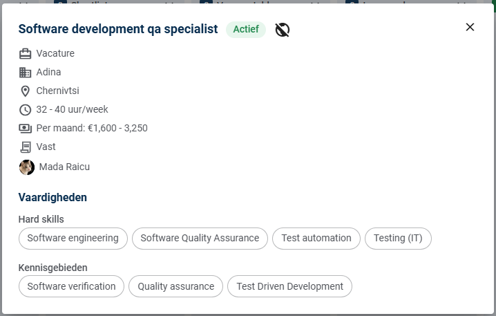 - De gekozen talent is nu toegevoegd aan de pipeline